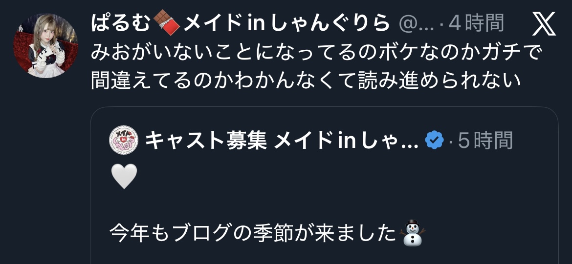 ブログのサムネ写真に写っているメイドの名前を書いていただけで忘れているわけではないです。