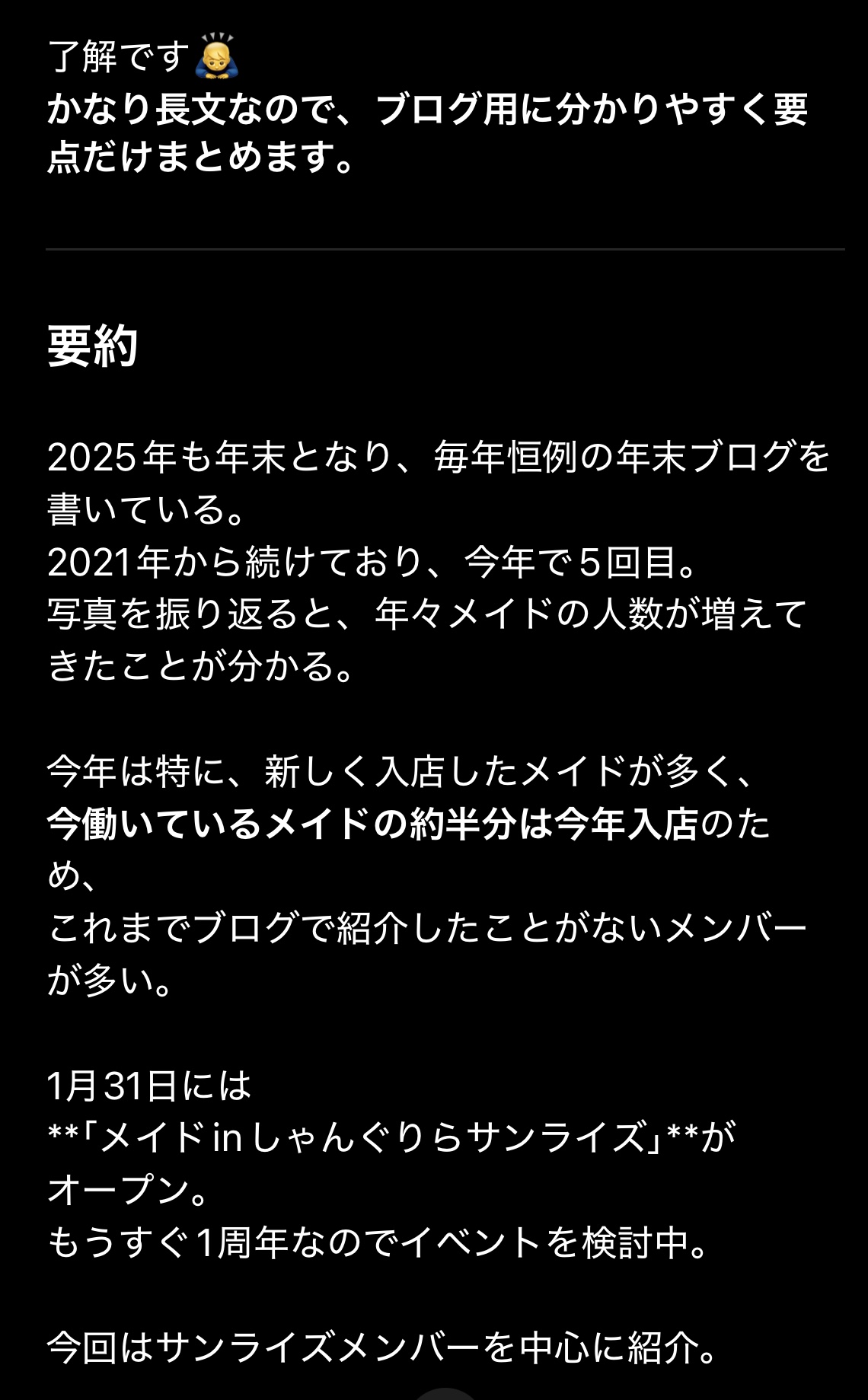 このブログをここまで読んでくれた方の為に昨日の内容をChatGPTに要約してもらいました。