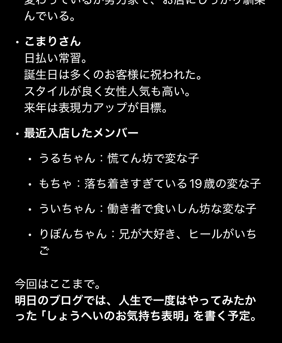 今日も新しいメンバー中心に書きます。